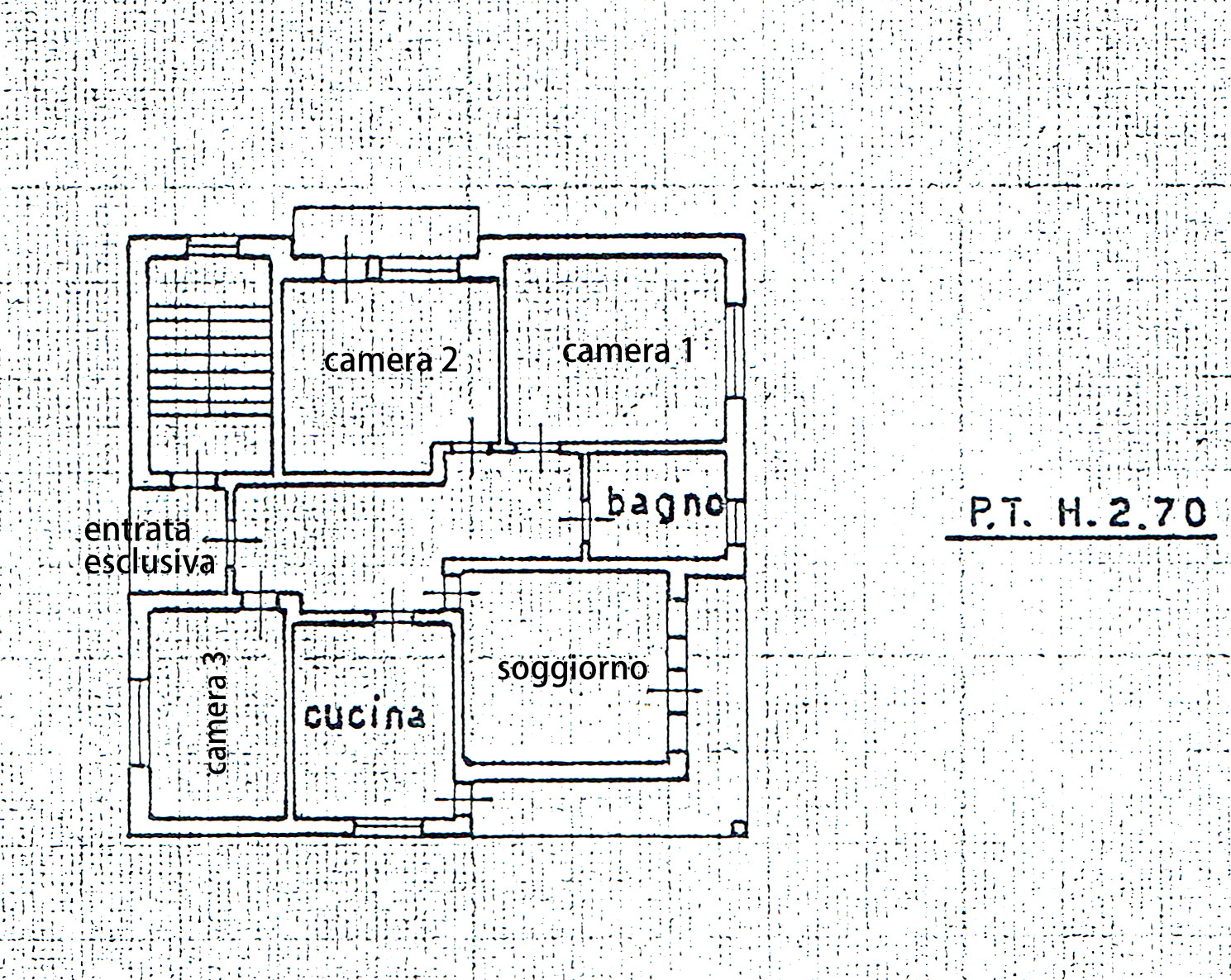 E’ composto da ingresso, cucina e soggiorno separati, 3 camere di cui 2 matrimoniali, 1 bagno. E’ di circa 120 mq + terrazze. E’ in una bella posizione centrale e dominante, con delle belle aperture che portano nell’appartamento un sacco di luce. Ha il riscaldamento termoautonomo a metano con caldaietta nella cantina. Sono presenti canne fumarie. Serramenti anni ’70 con doppio vetro senza vetrocamera (da sostituire). Tetto in calcestruzzo. Classe energ. G. No amministratore , no spese condomiali.