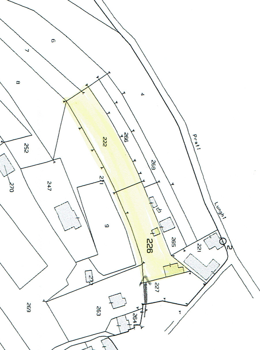 All’esterno dell’abitazione verso ovest è presente un terreno di quasi 2.000 mq con all’interno un deposito-legnaia.